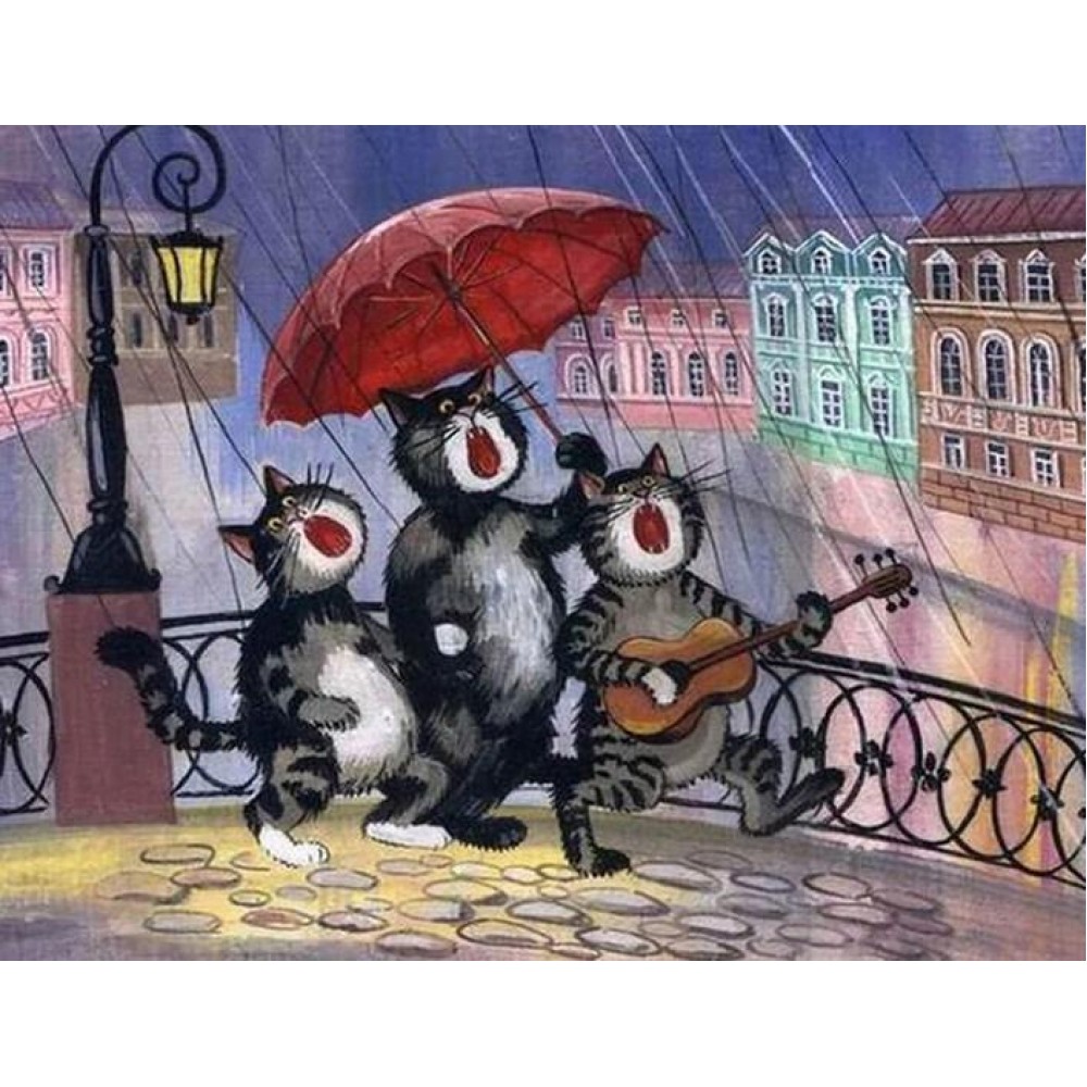 Cartoon Cats Playing Guitar