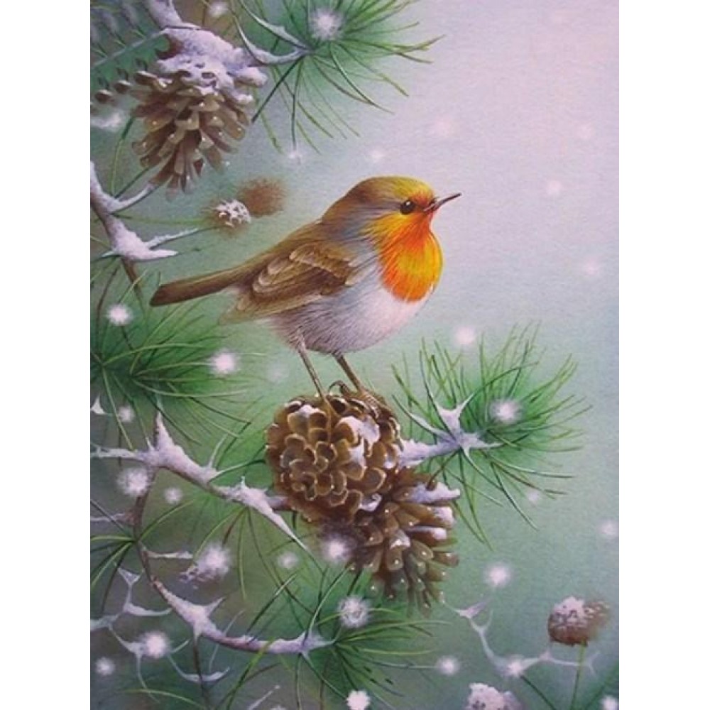 Bird Sitting on Pine Cone
